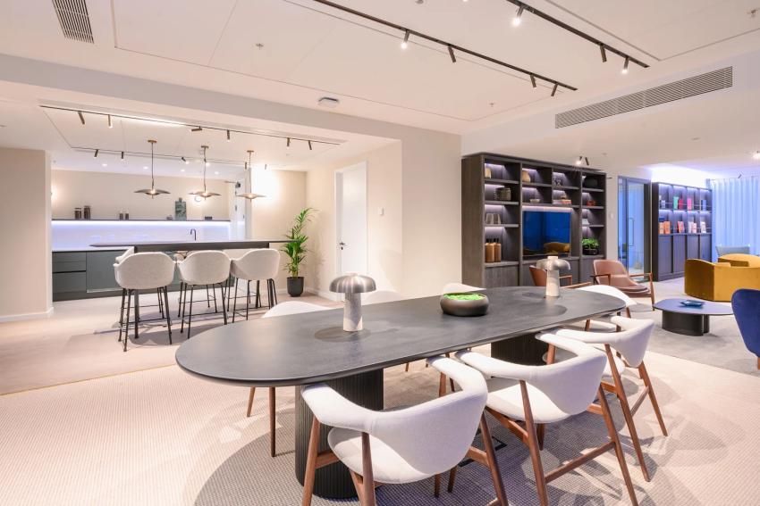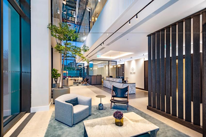 The meticulously crafted 1, 2 and 3-bedroom residences showcase dual-aspect living spaces that maximise natural light whilst capturing spectacular city and river views from high-rise balconies. Each home features premium finishes throughout, from sleek hardwood floors to contemporary kitchens equipped with built-in appliances and LED under-cabinet lighting. The modern interiors blend luxury design with practical functionality, creating sophisticated living spaces that cater to contemporary urban lifestyles.