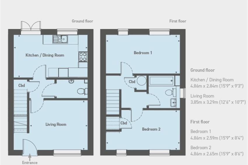 All of the properties benefit from allocated off-road parking and are fitted with PV solar panels which can help to reduce carbon emissions as well as reduce utility bills. The two bedroom homes have a spacious living/dining room at the back which looks out on to a private rear garden, a separate kitchen and a useful cloakroom with WC and hand basin on the ground floor. Upstairs are two good-sized double bedrooms and a contemporary style family bathroom.