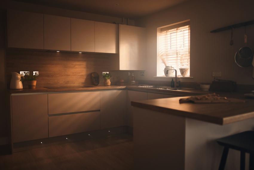 Sleek, contemporary handleless kitchen doors, perfectly paired with stylish worktops and a range of high-quality appliances to bring your dream hosting space to life.