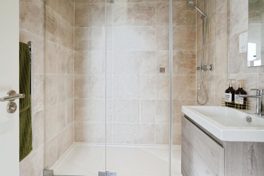 • Porcelanosa NK sanitaryware range, marble effect tiling and heated towel rails